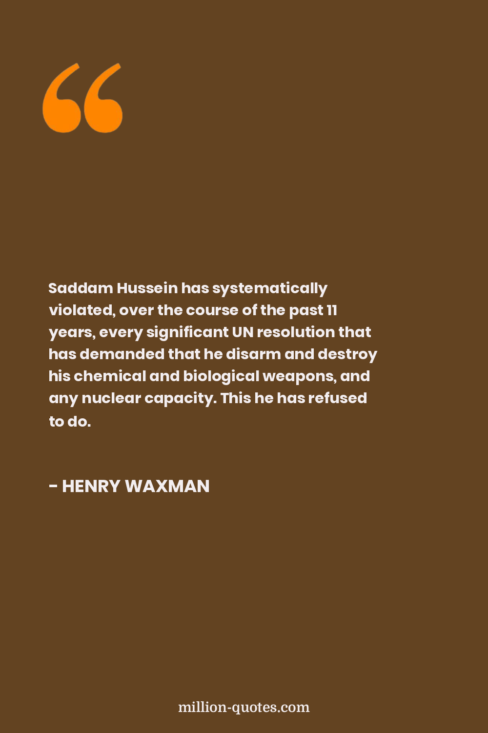 Saddam Hussein has systematically violated, over the course of the past 11 years, every significant UN resolution that has demanded that he disarm and destroy his chemical and biological weapons, and any nuclear capacity. This he has refused to do.