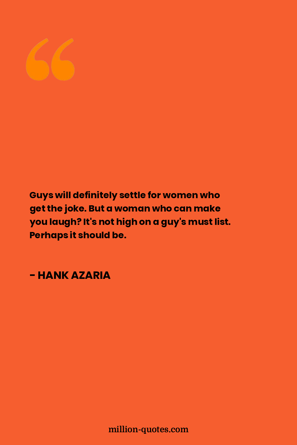 Guys will definitely settle for women who get the joke. But a woman who can make you laugh? It's not high on a guy's must list. Perhaps it should be.