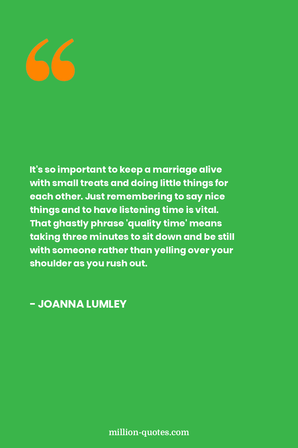 It's so important to keep a marriage alive with small treats and doing little things for each other. Just remembering to say nice things and to have listening time is vital. That ghastly phrase 'quality time' means taking three minutes to sit down and be still with someone rather than yelling over your shoulder as you rush out.