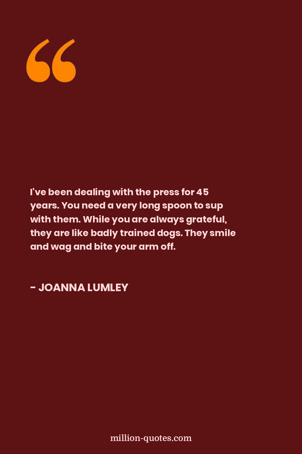 I've been dealing with the press for 45 years. You need a very long spoon to sup with them. While you are always grateful, they are like badly trained dogs. They smile and wag and bite your arm off.