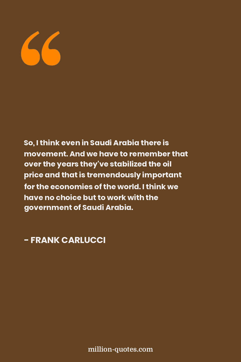 So, I think even in Saudi Arabia there is movement. And we have to remember that over the years they've stabilized the oil price and that is tremendously important for the economies of the world. I think we have no choice but to work with the government of Saudi Arabia.