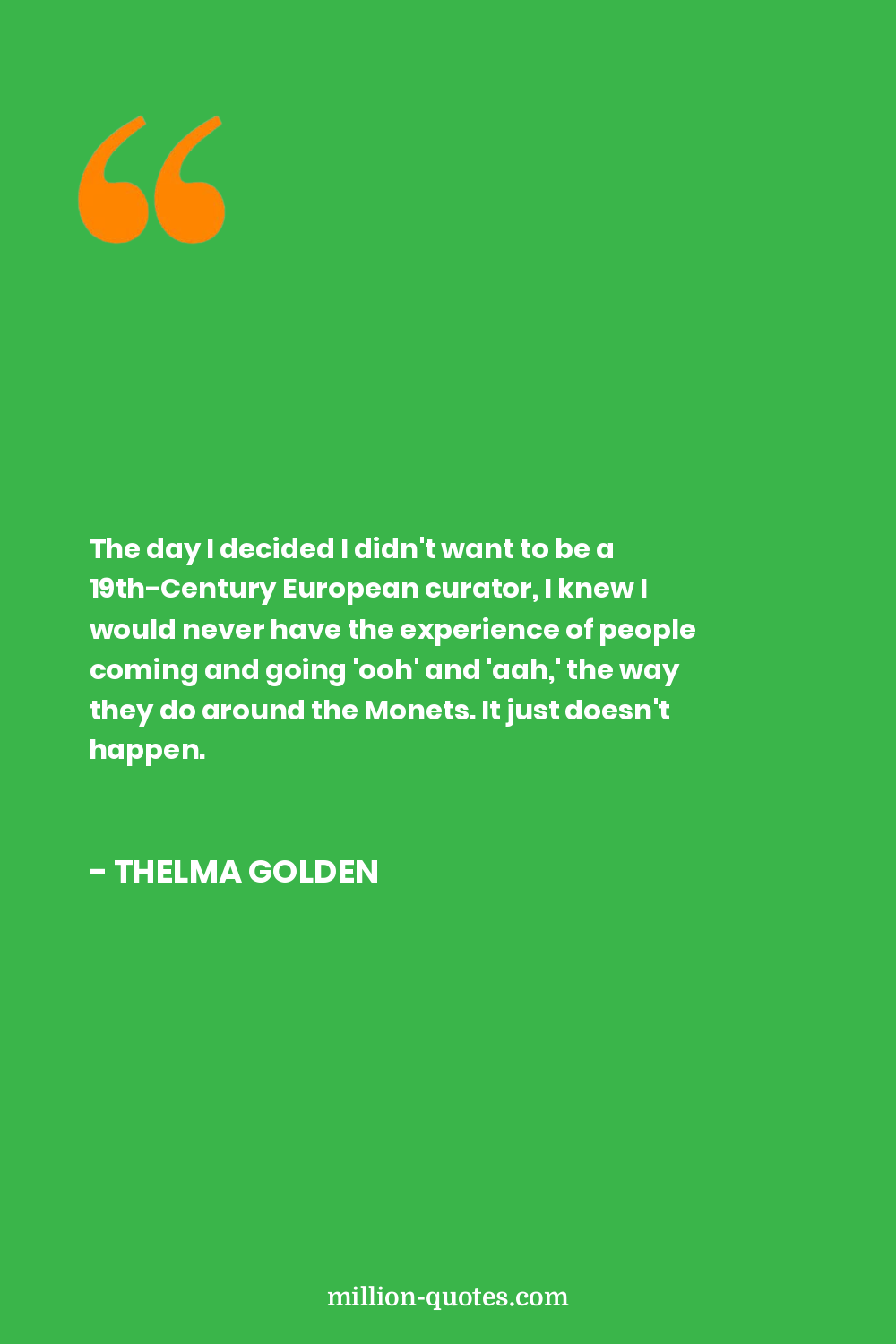 The day I decided I didn't want to be a 19th-Century European curator, I knew I would never have the experience of people coming and going 'ooh' and 'aah,' the way they do around the Monets. It just doesn't happen.