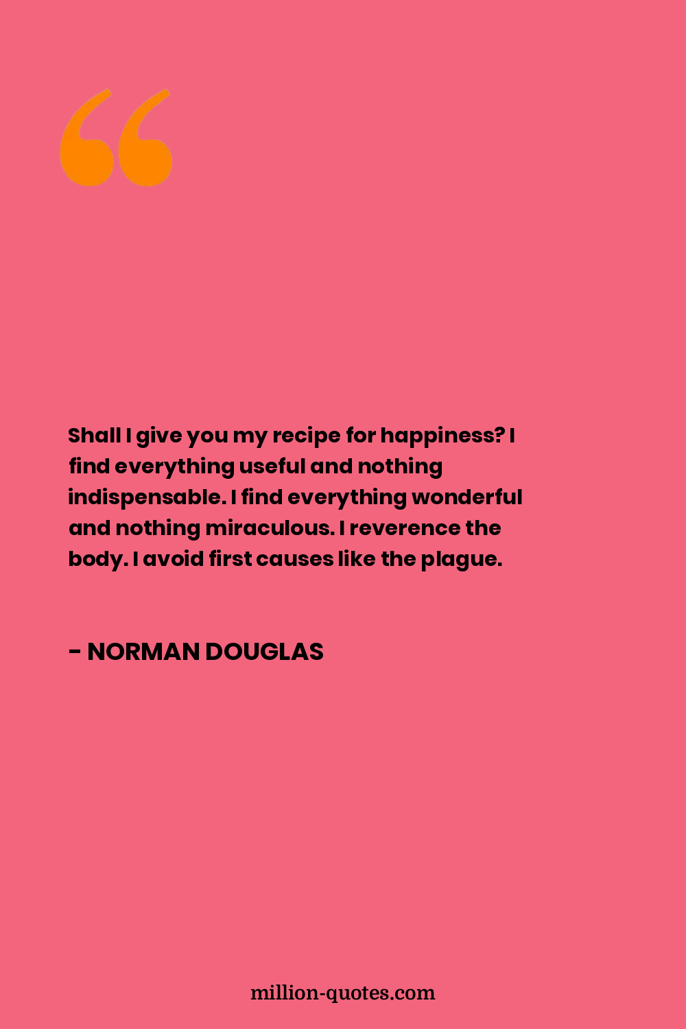 Shall I give you my recipe for happiness? I find everything useful and nothing indispensable. I find everything wonderful and nothing miraculous. I reverence the body. I avoid first causes like the plague.