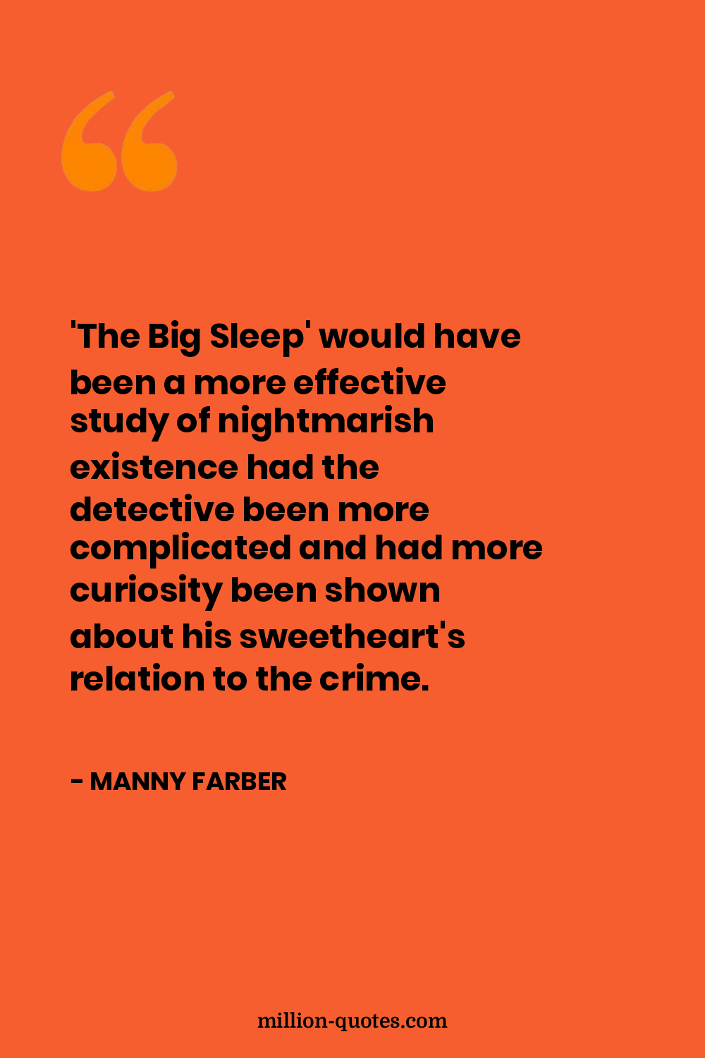 'The Big Sleep' would have been a more effective study of nightmarish existence had the detective been more complicated and had more curiosity been shown about his sweetheart's relation to the crime.