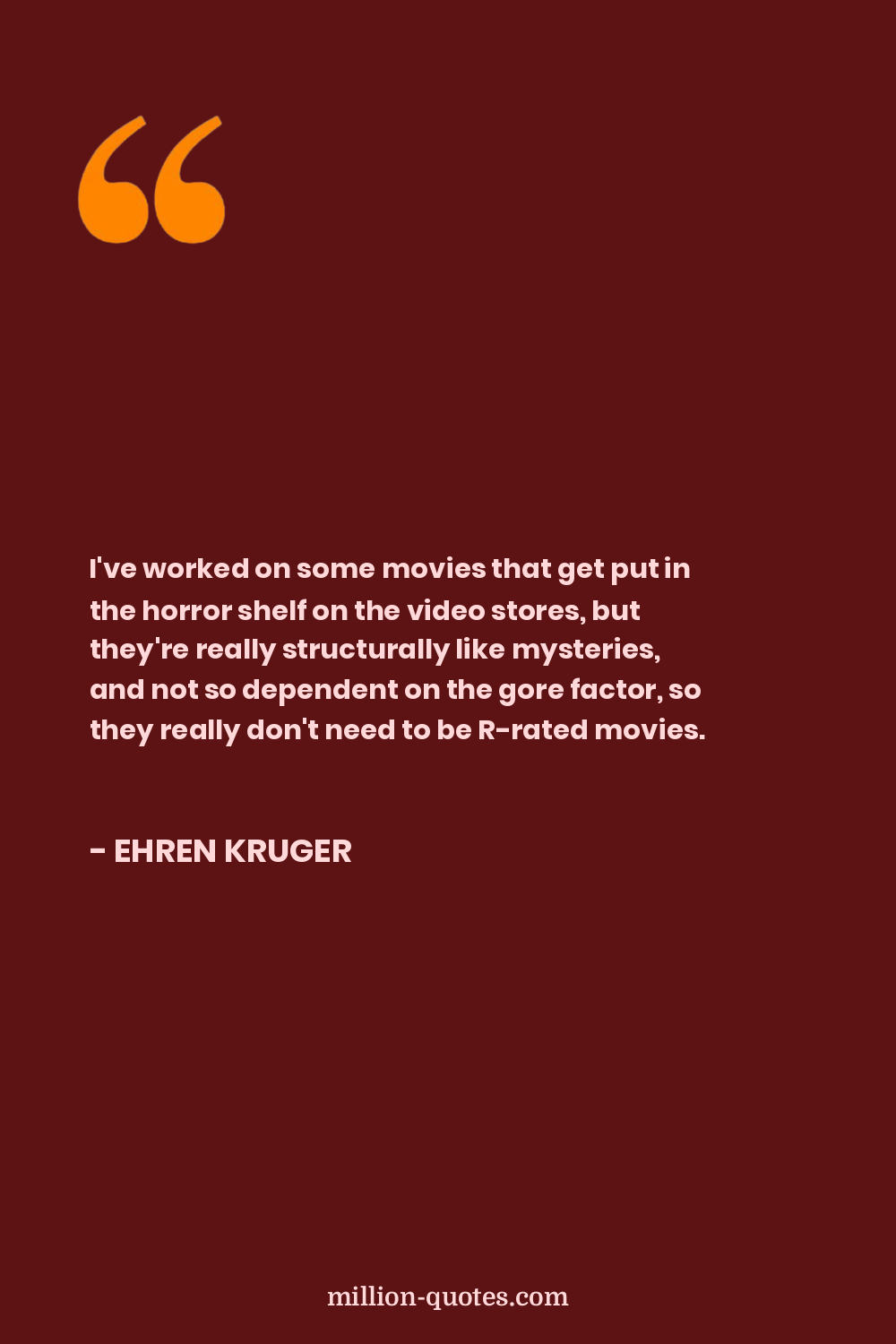 I've worked on some movies that get put in the horror shelf on the video stores, but they're really structurally like mysteries, and not so dependent on the gore factor, so they really don't need to be R-rated movies.