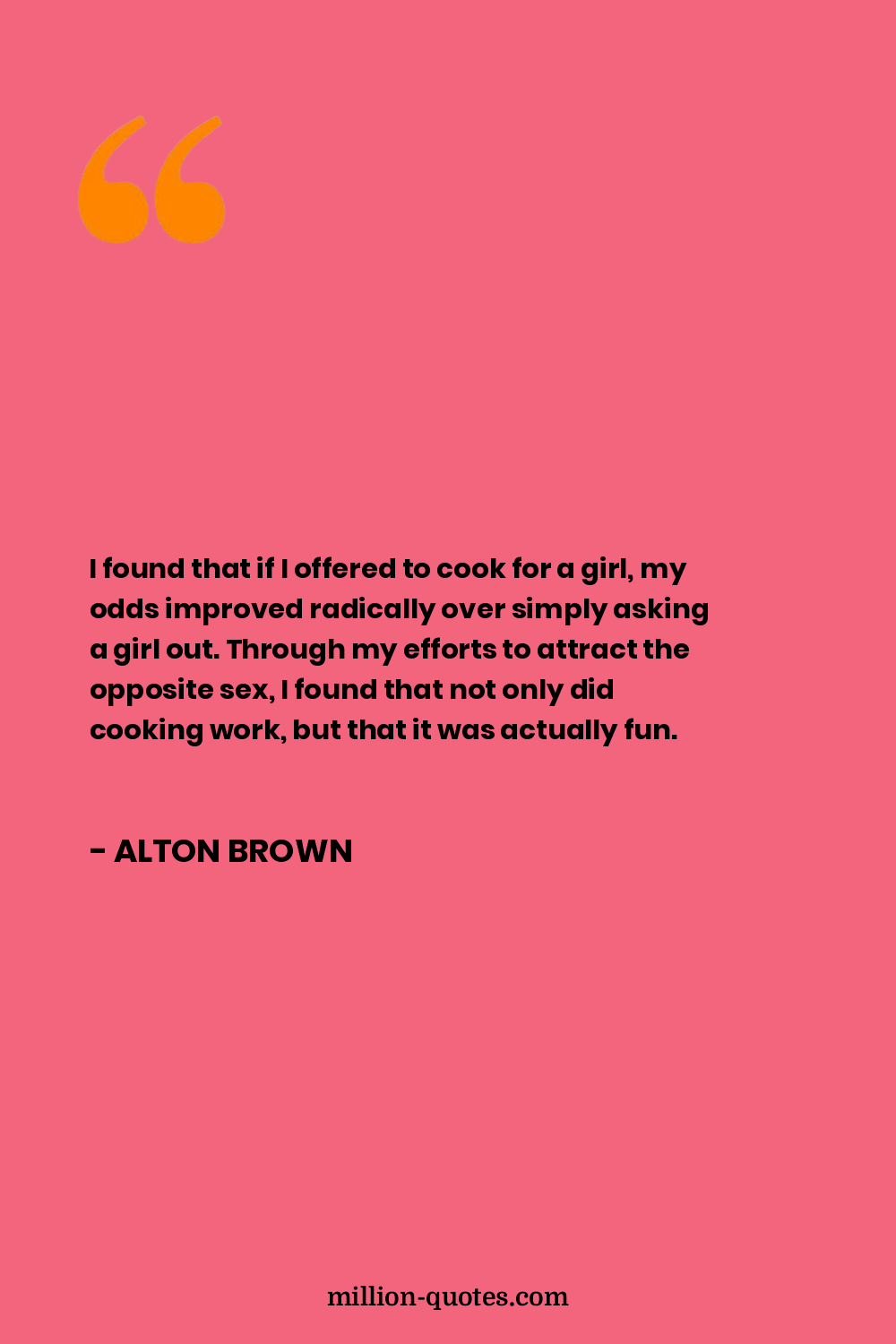 I found that if I offered to cook for a girl, my odds improved radically over simply asking a girl out. Through my efforts to attract the opposite sex, I found that not only did cooking work, but that it was actually fun.