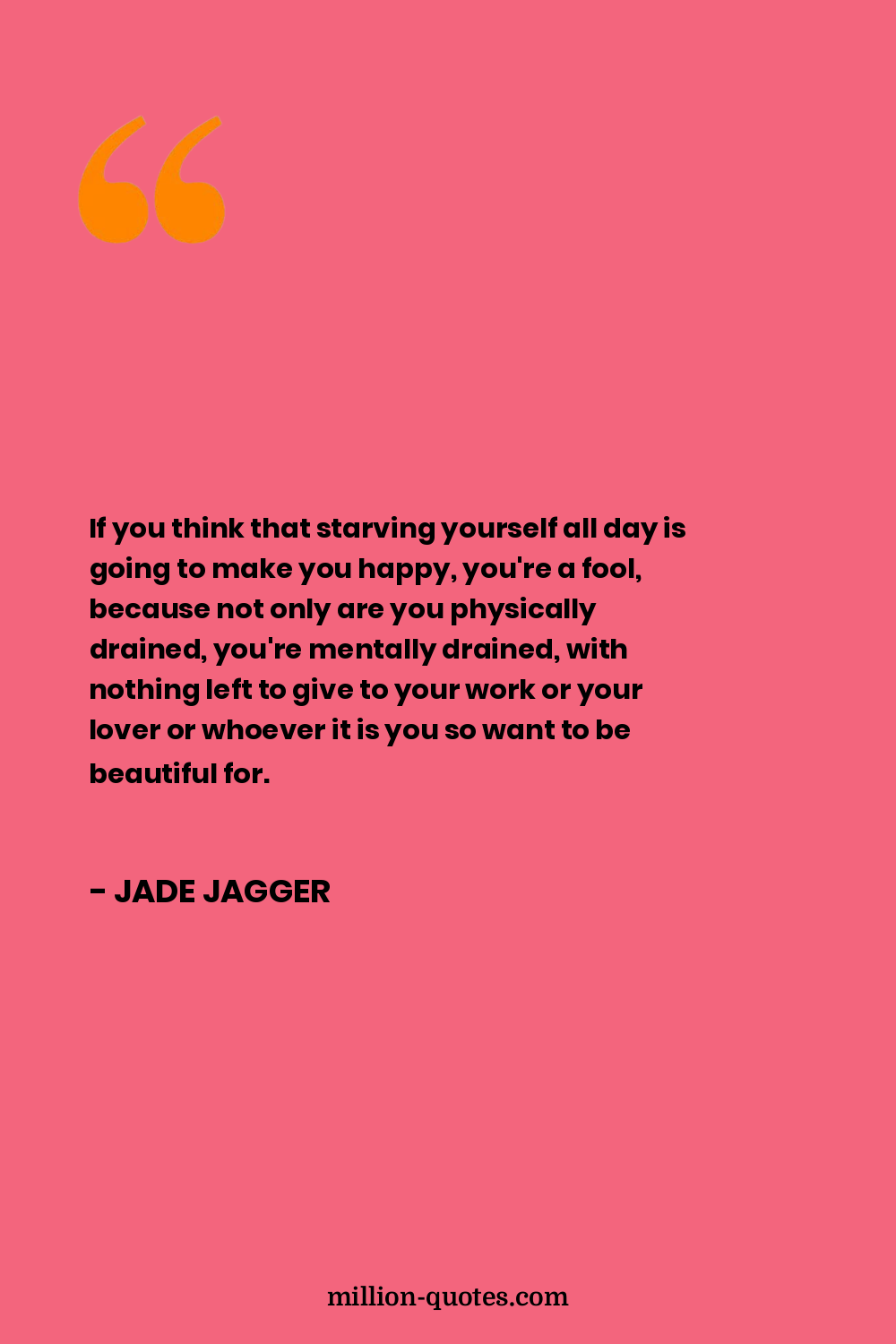 If you think that starving yourself all day is going to make you happy, you're a fool, because not only are you physically drained, you're mentally drained, with nothing left to give to your work or your lover or whoever it is you so want to be beautiful for.