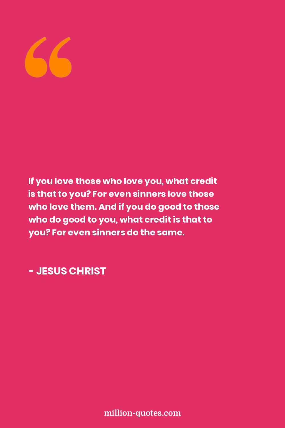 If you love those who love you, what credit is that to you? For even sinners love those who love them. And if you do good to those who do good to you, what credit is that to you? For even sinners do the same.