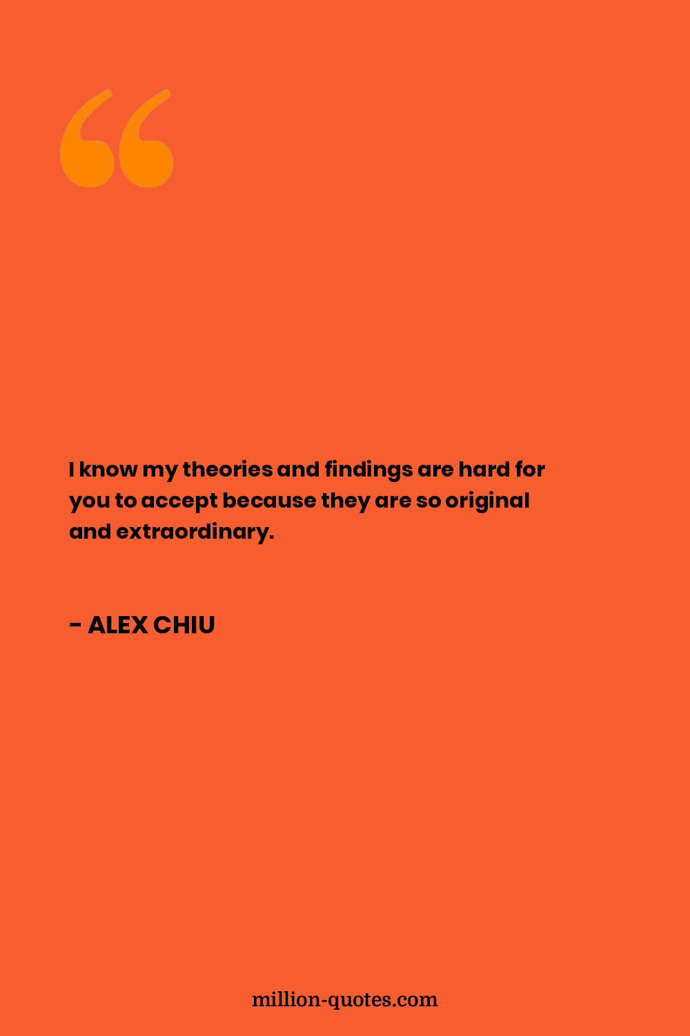 I know my theories and findings are hard for you to accept because they are so original and extraordinary.