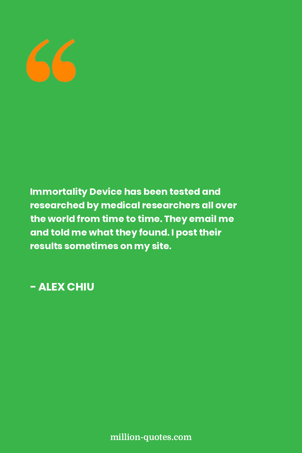 Immortality Device has been tested and researched by medical researchers all over the world from time to time. They email me and told me what they found. I post their results sometimes on my site.