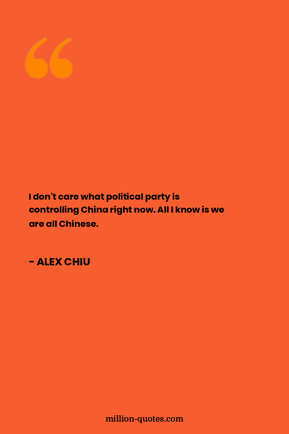 I don't care what political party is controlling China right now. All I know is we are all Chinese.