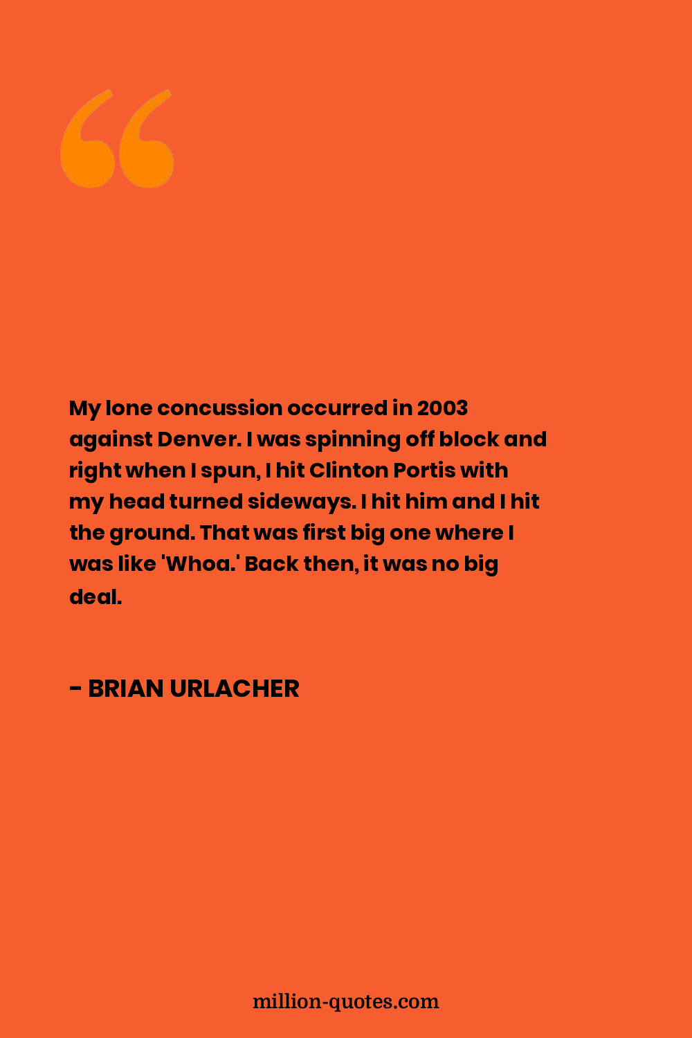 My lone concussion occurred in 2003 against Denver. I was spinning off block and right when I spun, I hit Clinton Portis with my head turned sideways. I hit him and I hit the ground. That was first big one where I was like 'Whoa.' Back then, it was no big deal.