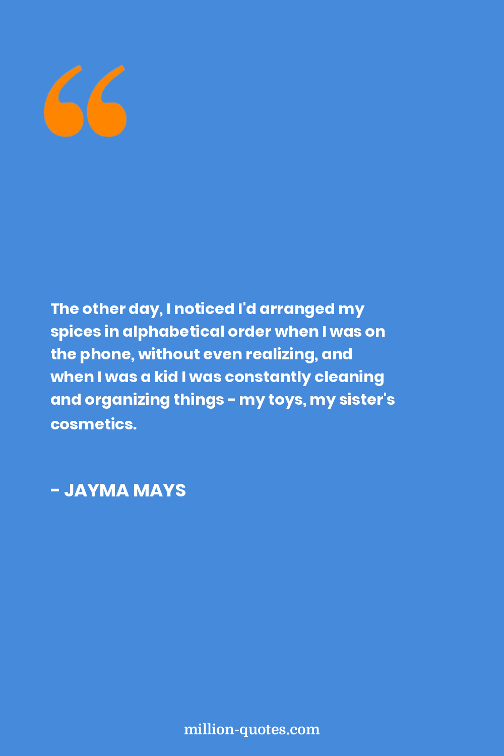 The other day, I noticed I'd arranged my spices in alphabetical order when I was on the phone, without even realizing, and when I was a kid I was constantly cleaning and organizing things - my toys, my sister's cosmetics.