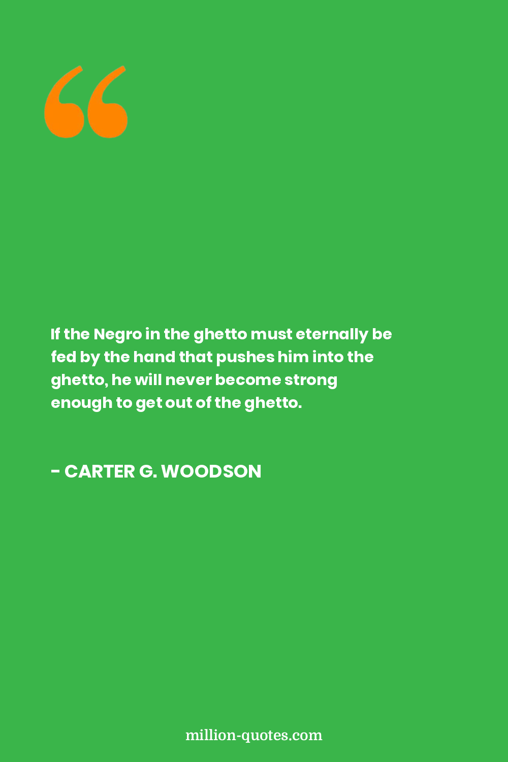 If the Negro in the ghetto must eternally be fed by the hand that pushes him into the ghetto, he will never become strong enough to get out of the ghetto.