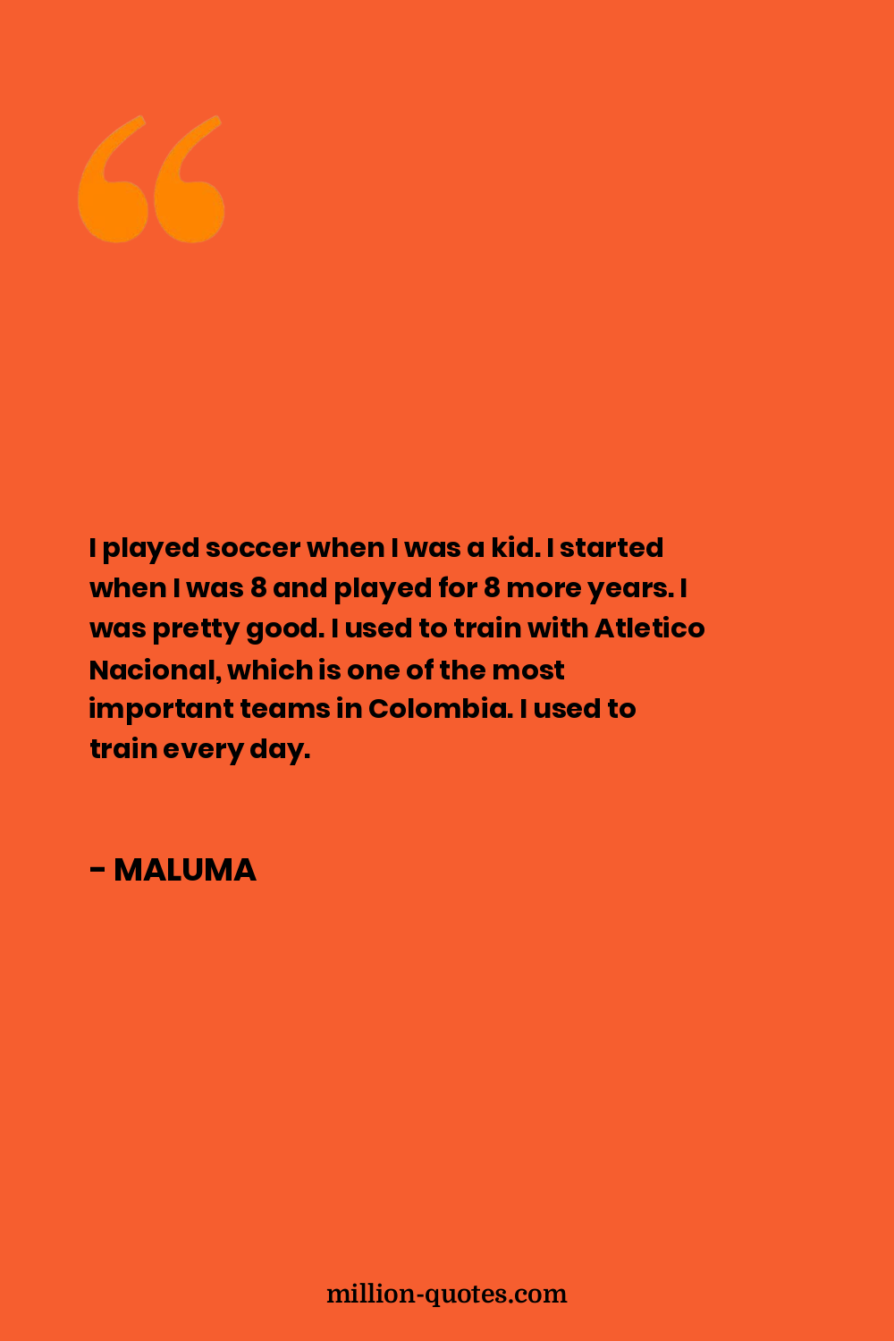 I played soccer when I was a kid. I started when I was 8 and played for 8 more years. I was pretty good. I used to train with Atletico Nacional, which is one of the most important teams in Colombia. I used to train every day.
