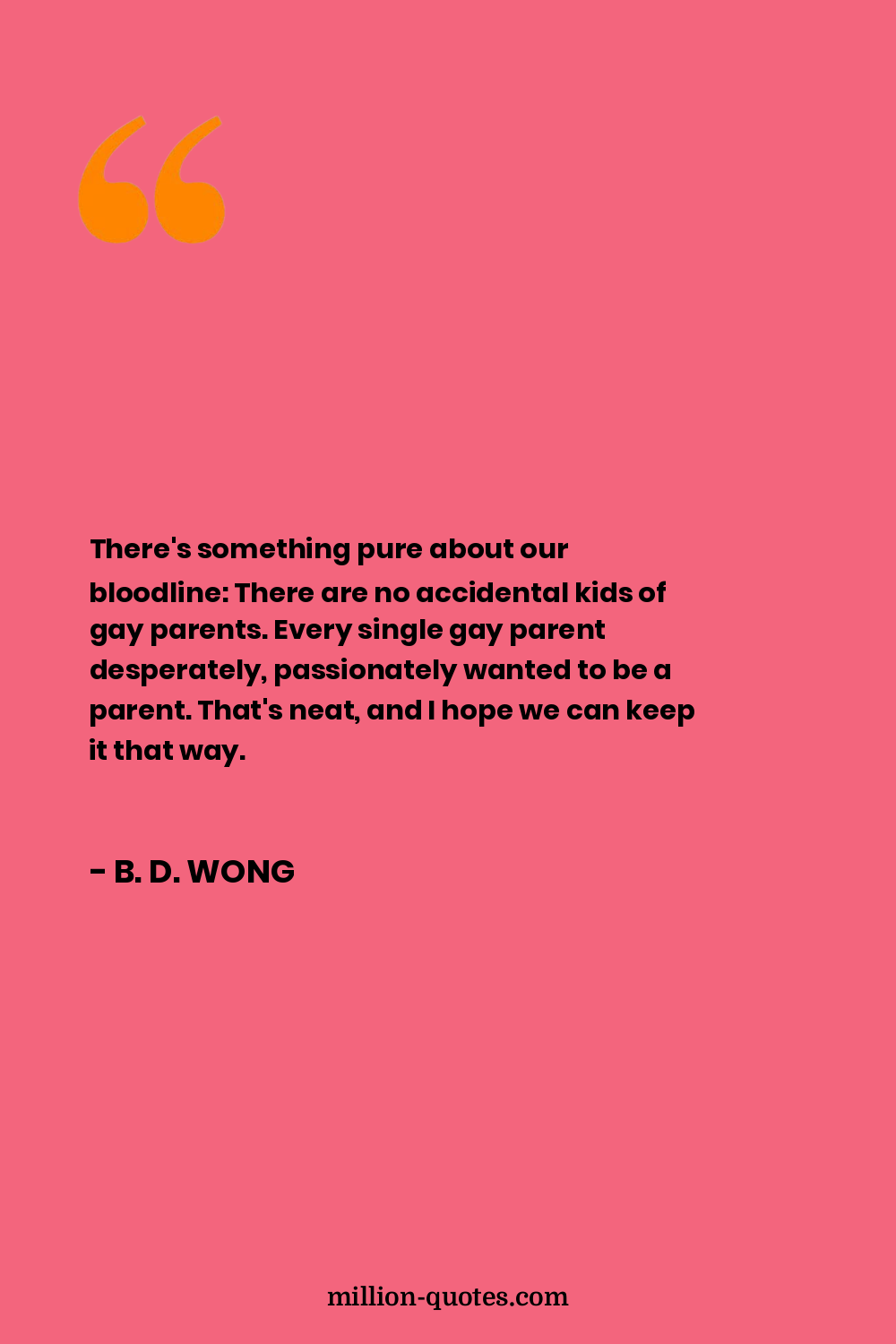There's something pure about our bloodline: There are no accidental kids of gay parents. Every single gay parent desperately, passionately wanted to be a parent. That's neat, and I hope we can keep it that way.