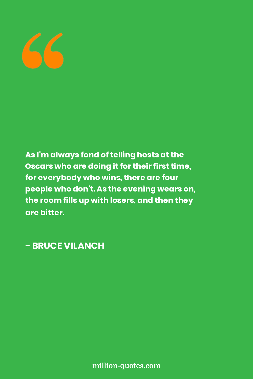 As I'm always fond of telling hosts at the Oscars who are doing it for their first time, for everybody who wins, there are four people who don't. As the evening wears on, the room fills up with losers, and then they are bitter.