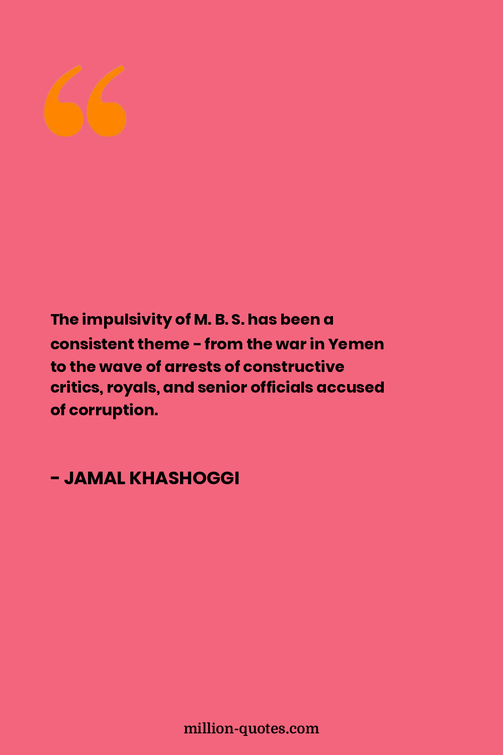 The impulsivity of M. B. S. has been a consistent theme - from the war in Yemen to the wave of arrests of constructive critics, royals, and senior officials accused of corruption.
