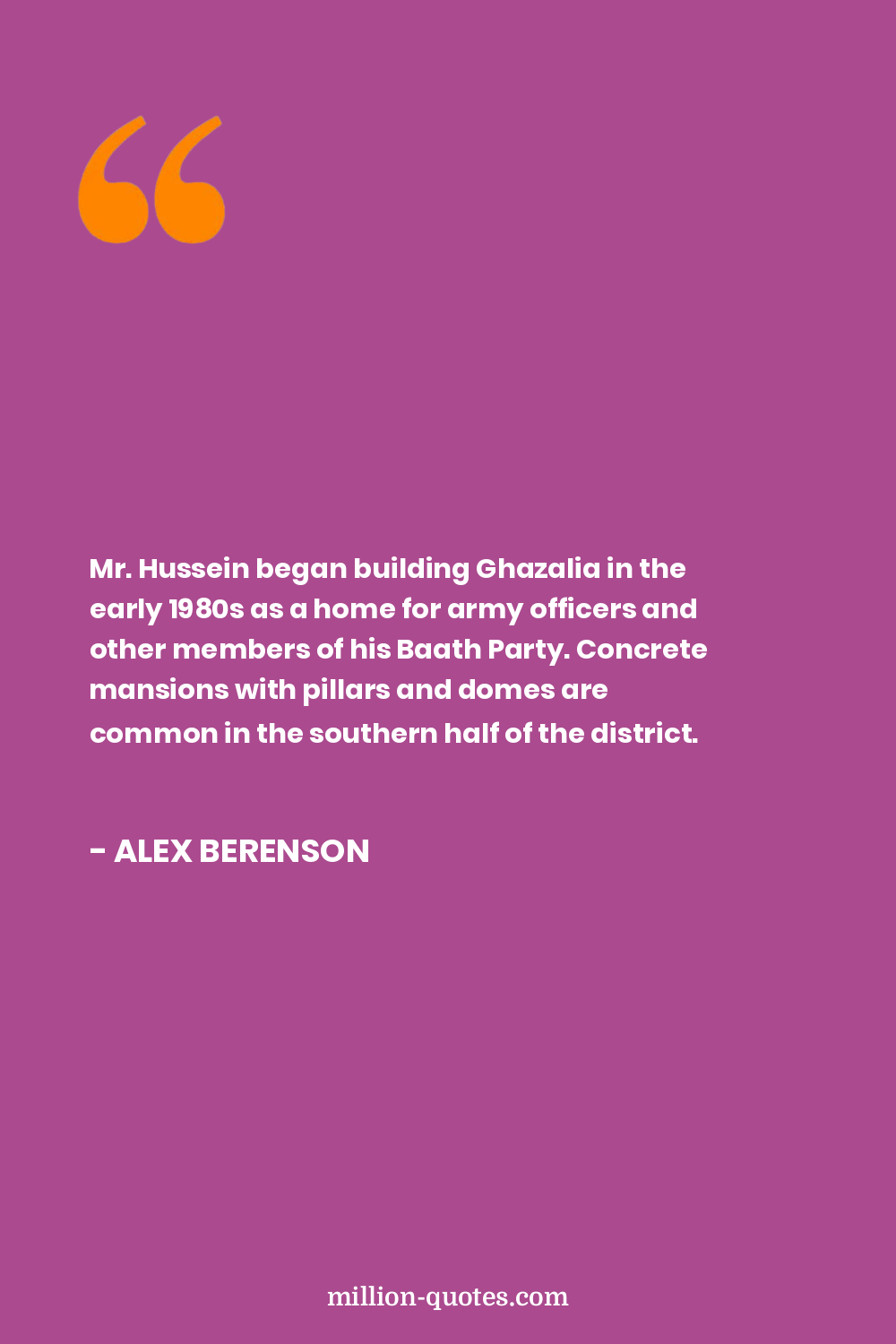 Mr. Hussein began building Ghazalia in the early 1980s as a home for army officers and other members of his Baath Party. Concrete mansions with pillars and domes are common in the southern half of the district.