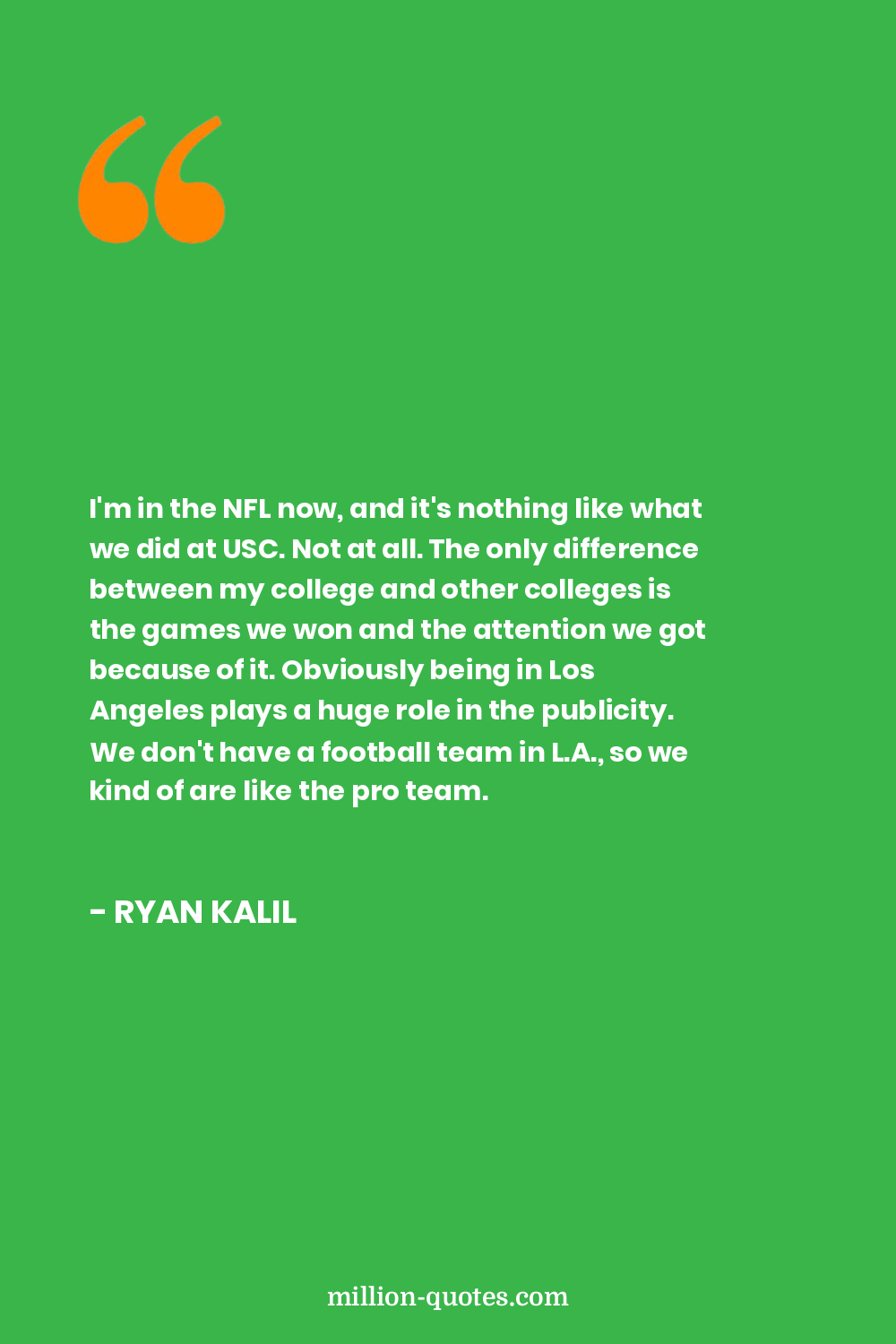 I'm in the NFL now, and it's nothing like what we did at USC. Not at all. The only difference between my college and other colleges is the games we won and the attention we got because of it. Obviously being in Los Angeles plays a huge role in the publicity. We don't have a football team in L.A., so we kind of are like the pro team.