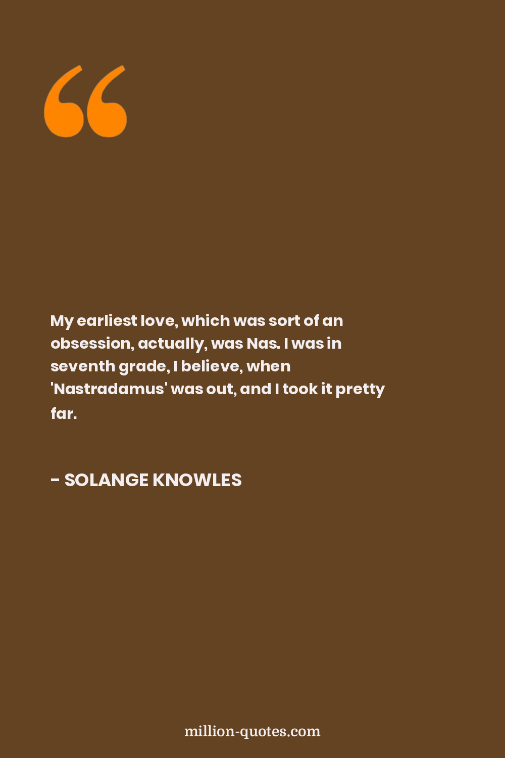 My earliest love, which was sort of an obsession, actually, was Nas. I was in seventh grade, I believe, when 'Nastradamus' was out, and I took it pretty far.