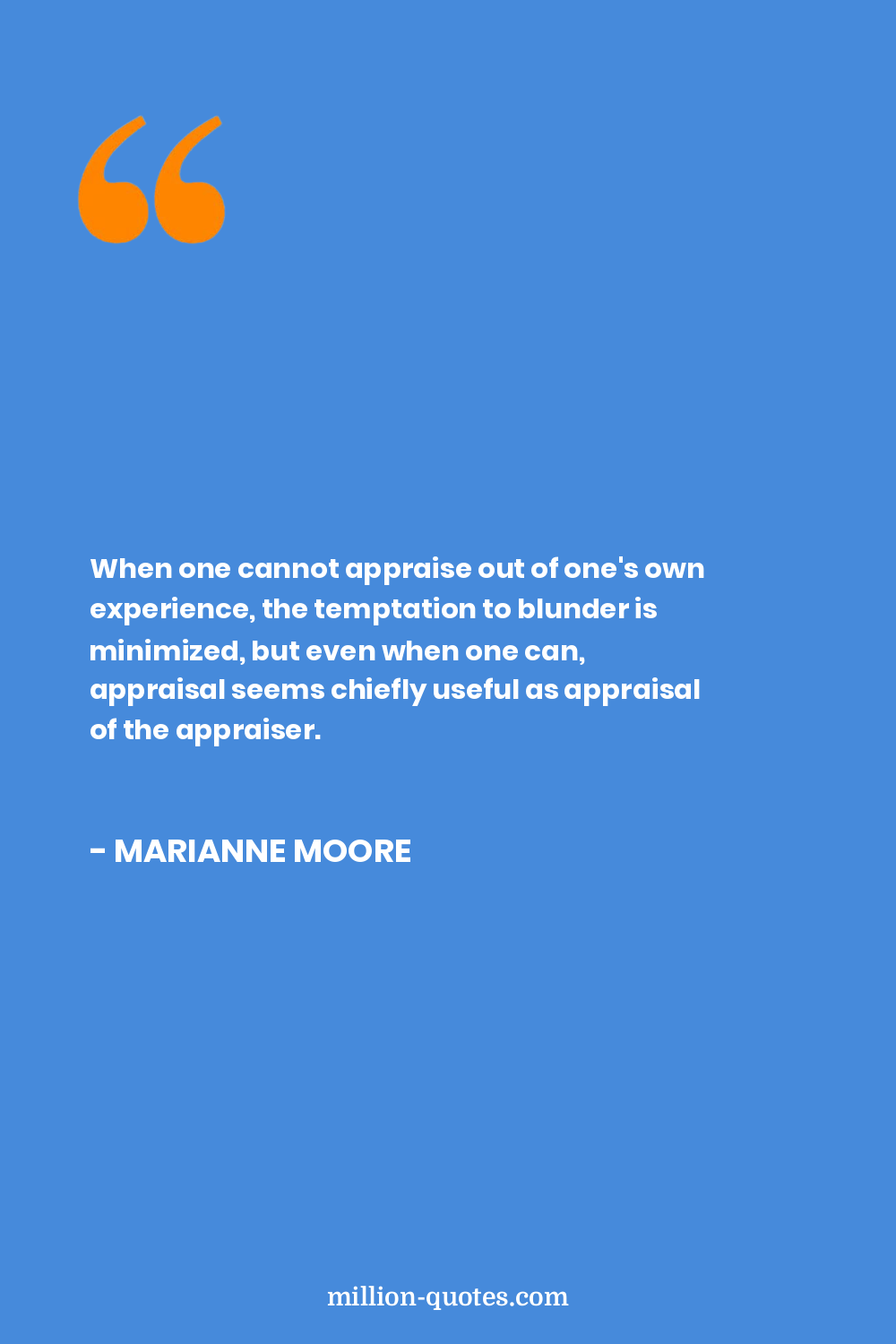 When one cannot appraise out of one's own experience, the temptation to blunder is minimized, but even when one can, appraisal seems chiefly useful as appraisal of the appraiser.