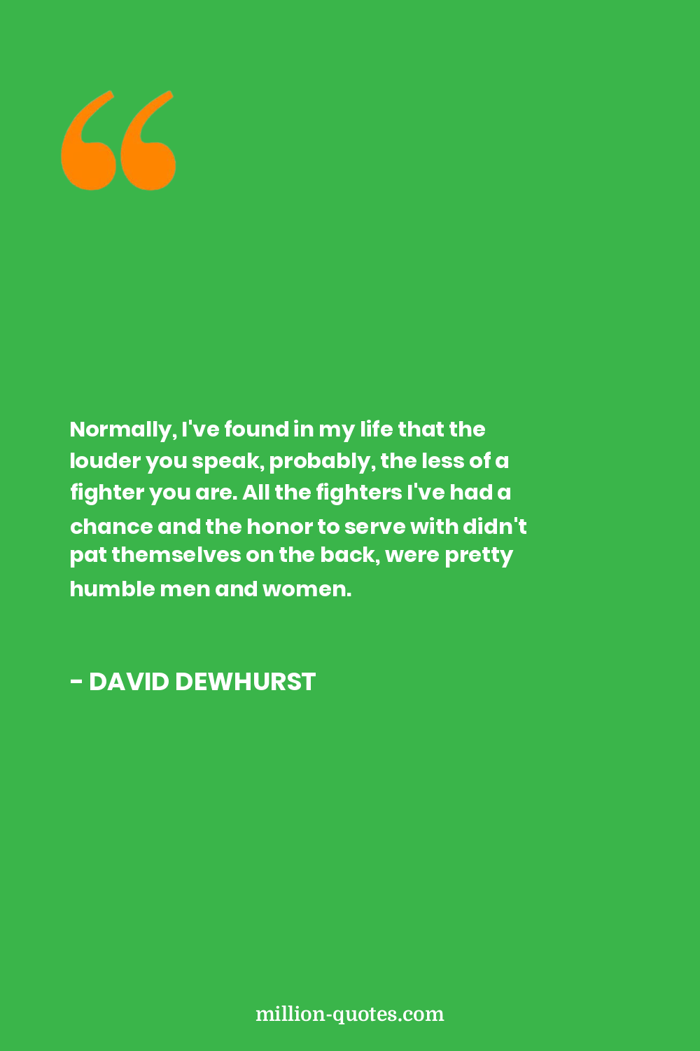 Normally, I've found in my life that the louder you speak, probably, the less of a fighter you are. All the fighters I've had a chance and the honor to serve with didn't pat themselves on the back, were pretty humble men and women.