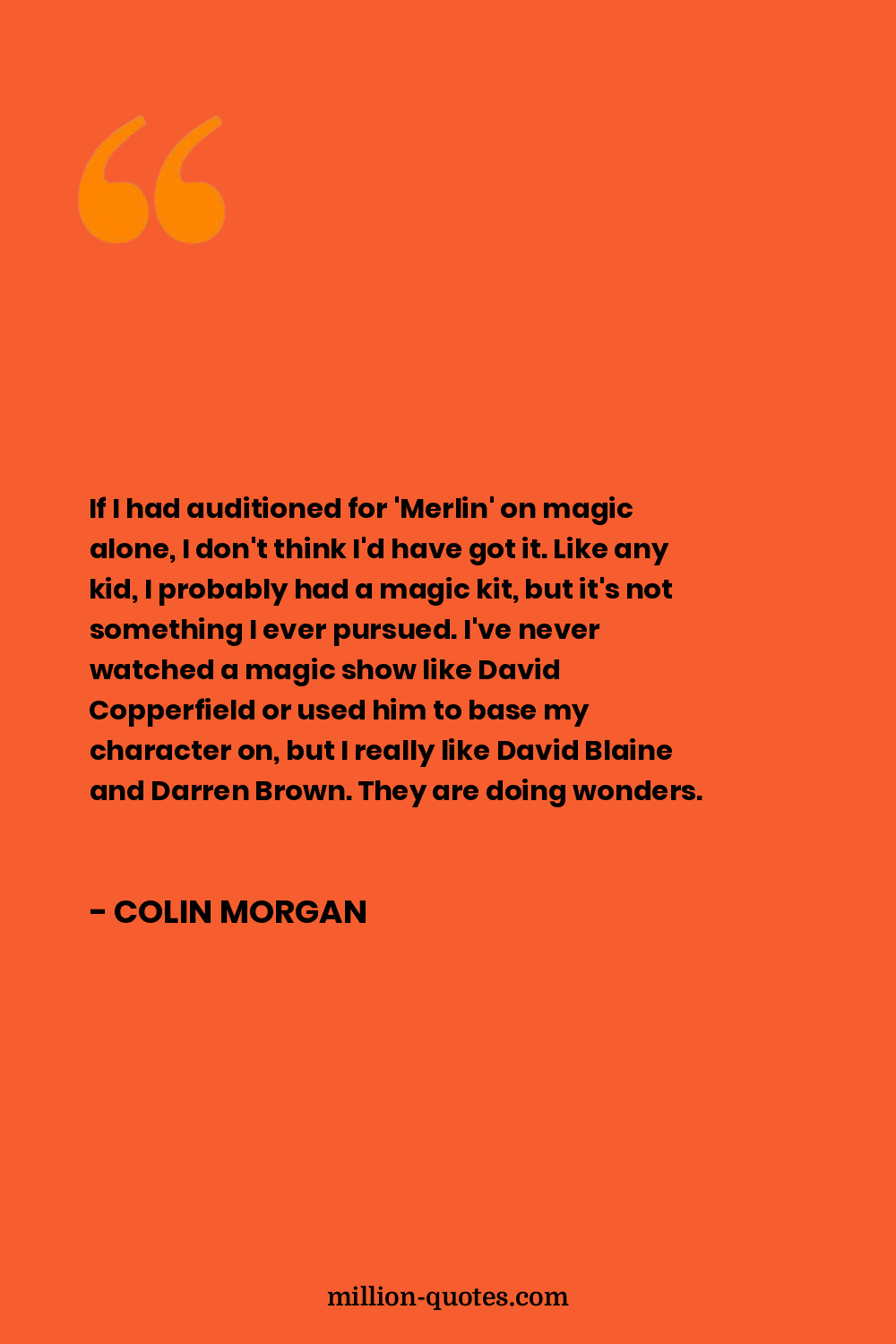 If I had auditioned for 'Merlin' on magic alone, I don't think I'd have got it. Like any kid, I probably had a magic kit, but it's not something I ever pursued. I've never watched a magic show like David Copperfield or used him to base my character on, but I really like David Blaine and Darren Brown. They are doing wonders.