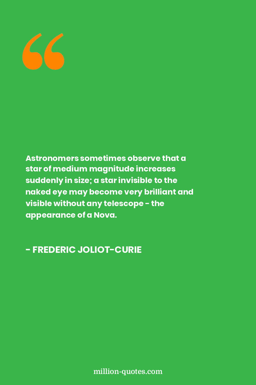 Astronomers sometimes observe that a star of medium magnitude increases suddenly in size; a star invisible to the naked eye may become very brilliant and visible without any telescope - the appearance of a Nova.