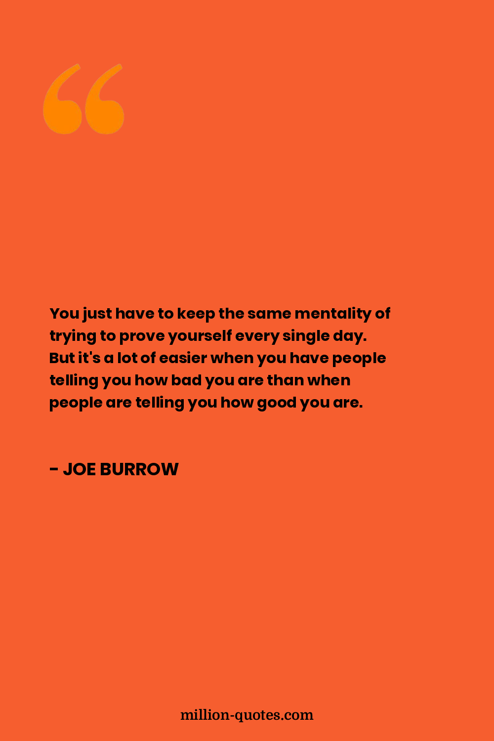 You just have to keep the same mentality of trying to prove yourself every single day. But it's a lot of easier when you have people telling you how bad you are than when people are telling you how good you are.