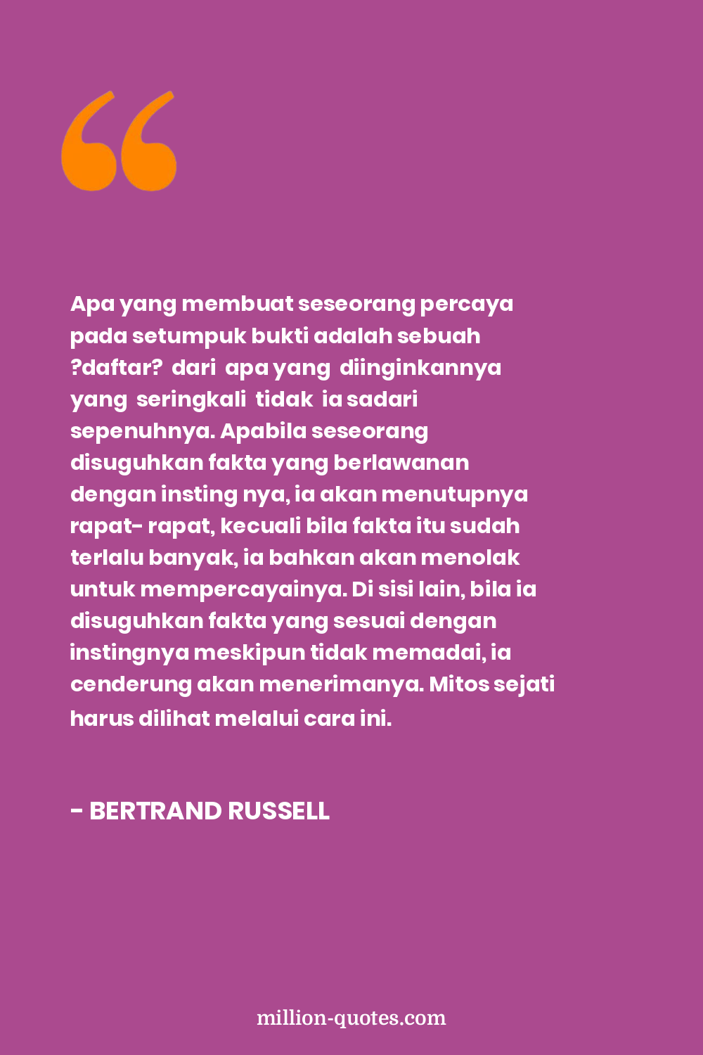 Apa yang membuat seseorang percaya pada setumpuk bukti adalah sebuah ?daftar? dari apa yang diinginkannya yang seringkali tidak ia sadari sepenuhnya. Apabila seseorang disuguhkan fakta yang berlawanan dengan insting nya, ia akan menutupnya rapat- rapat, kecuali bila fakta itu sudah terlalu banyak, ia bahkan akan menolak untuk mempercayainya. Di sisi lain, bila ia disuguhkan fakta yang sesuai dengan instingnya meskipun tidak memadai, ia cenderung akan menerimanya. Mitos sejati harus dilihat melalui cara ini.