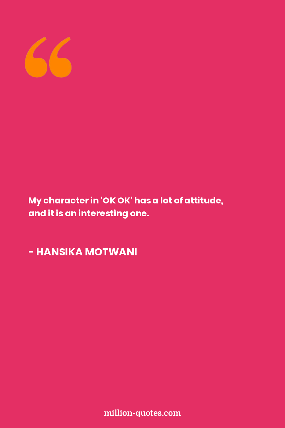 My character in 'OK OK' has a lot of attitude, and it is an interesting one.