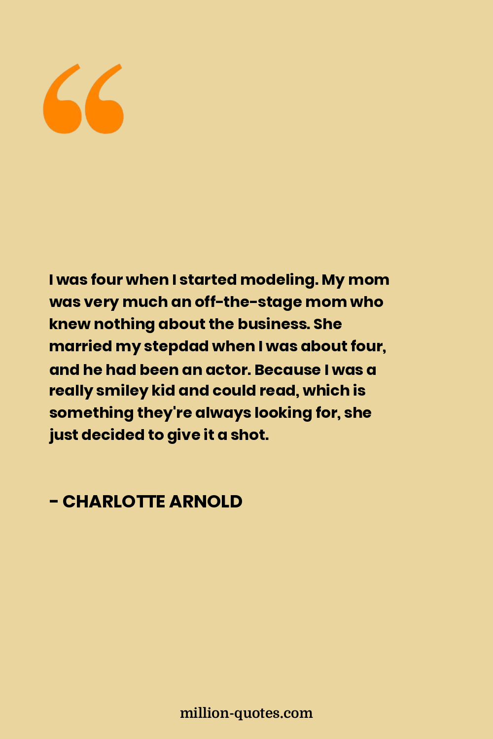 I was four when I started modeling. My mom was very much an off-the-stage mom who knew nothing about the business. She married my stepdad when I was about four, and he had been an actor. Because I was a really smiley kid and could read, which is something they're always looking for, she just decided to give it a shot.