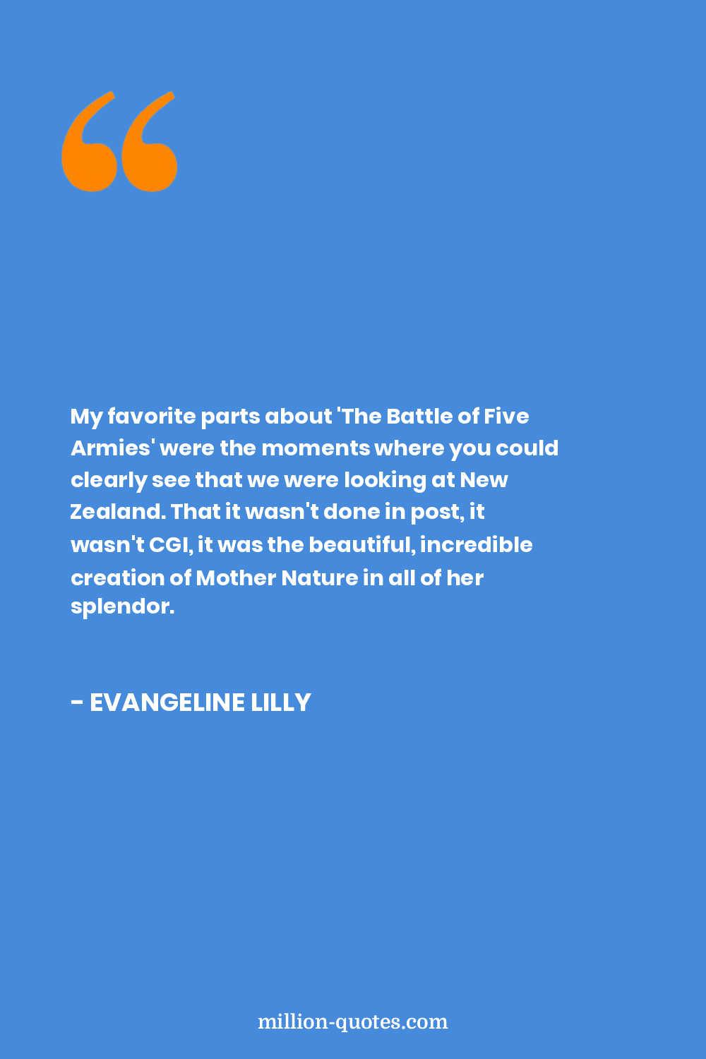 My favorite parts about 'The Battle of Five Armies' were the moments where you could clearly see that we were looking at New Zealand. That it wasn't done in post, it wasn't CGI, it was the beautiful, incredible creation of Mother Nature in all of her splendor.
