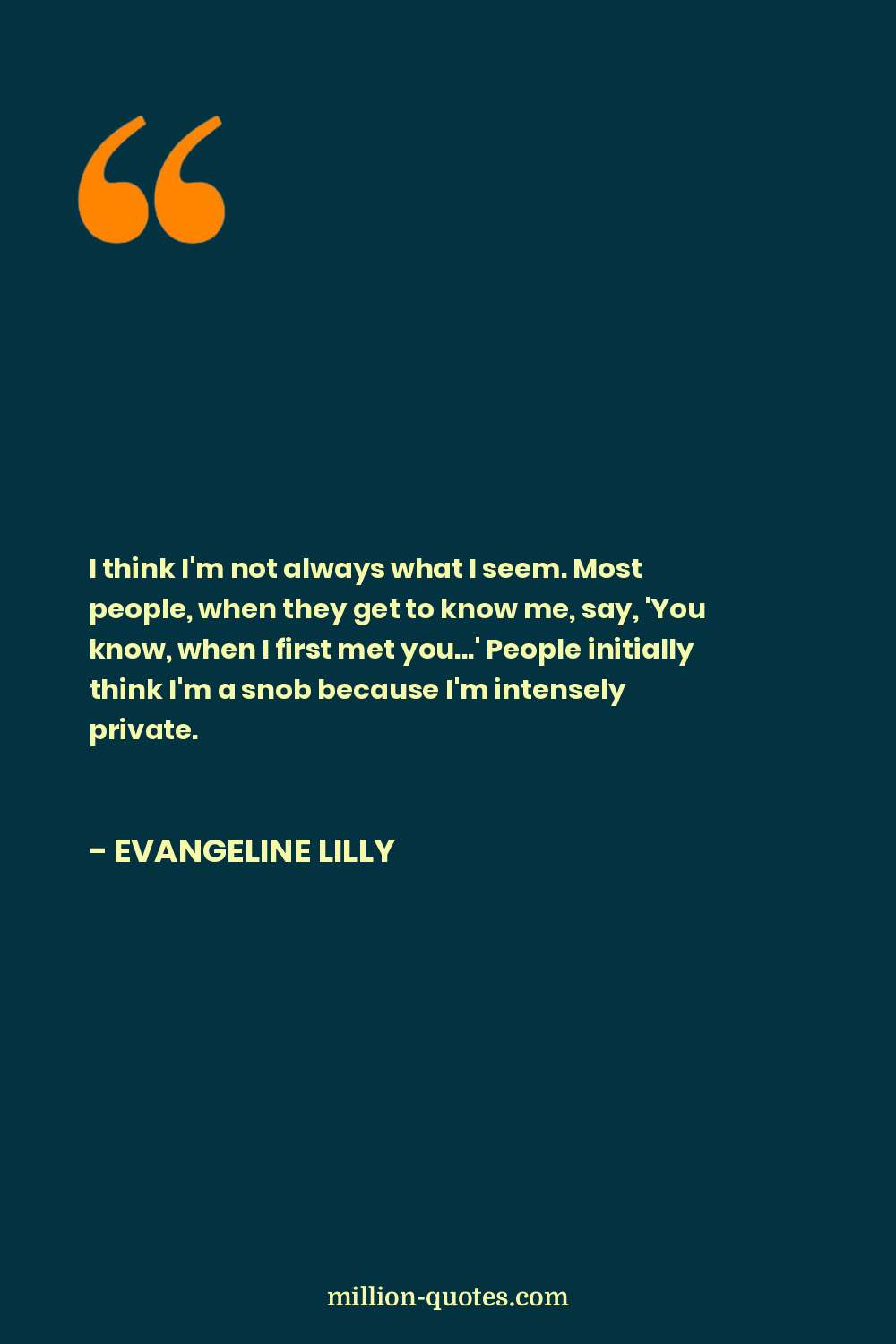 I think I'm not always what I seem. Most people, when they get to know me, say, 'You know, when I first met you...' People initially think I'm a snob because I'm intensely private.