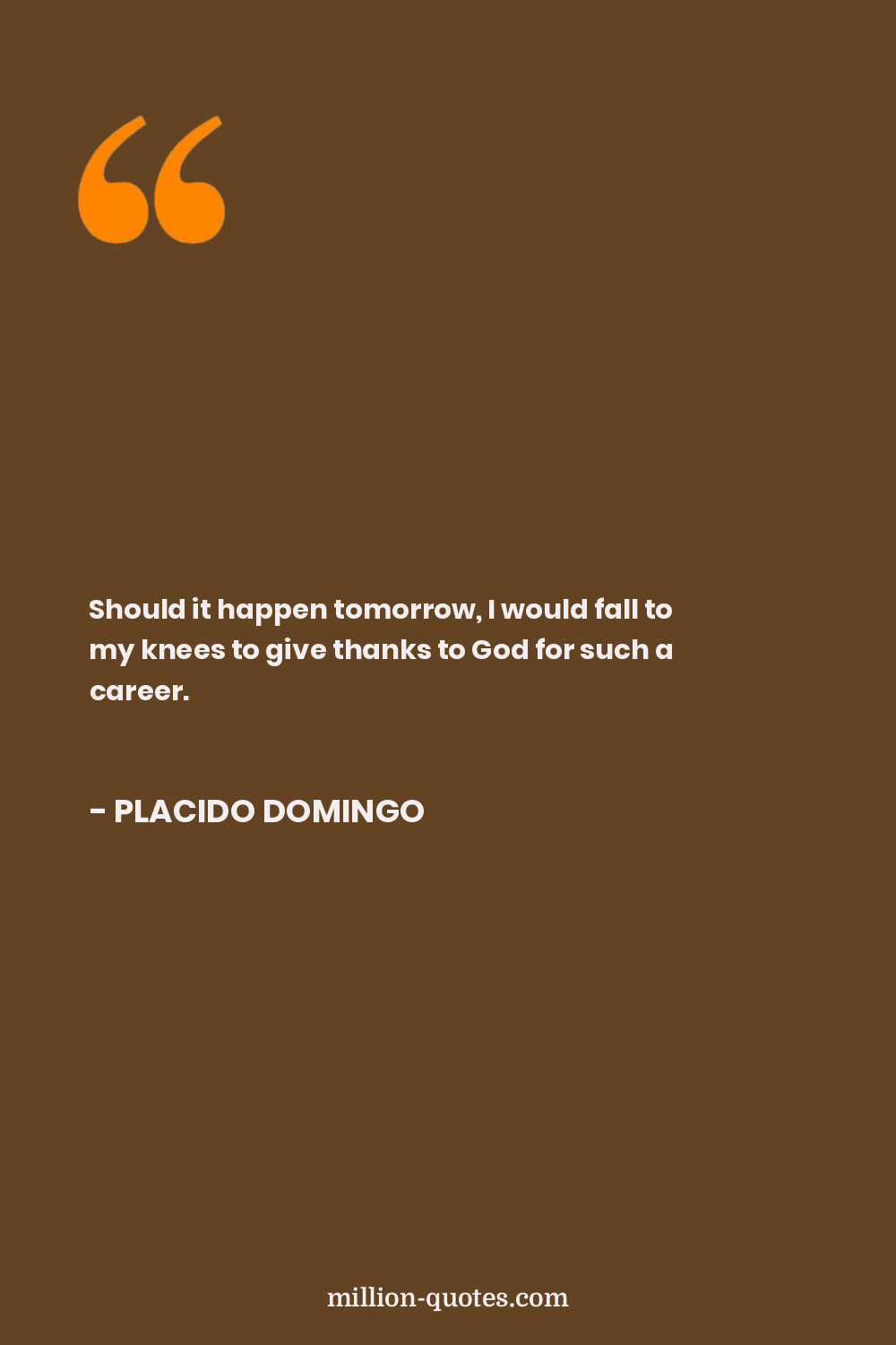 Should it happen tomorrow, I would fall to my knees to give thanks to God for such a career.