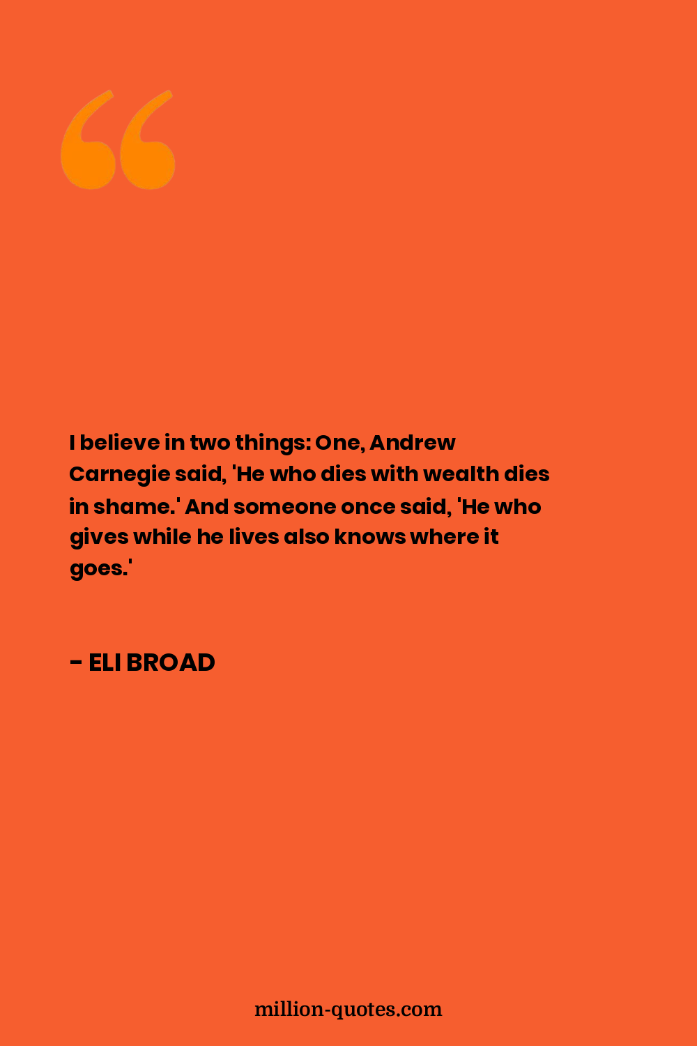 I believe in two things: One, Andrew Carnegie said, 'He who dies with wealth dies in shame.' And someone once said, 'He who gives while he lives also knows where it goes.'