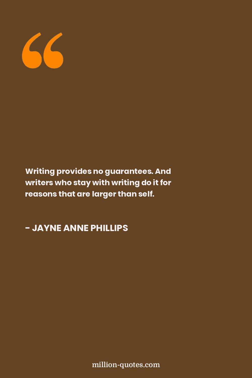 Writing provides no guarantees. And writers who stay with writing do it for reasons that are larger than self.