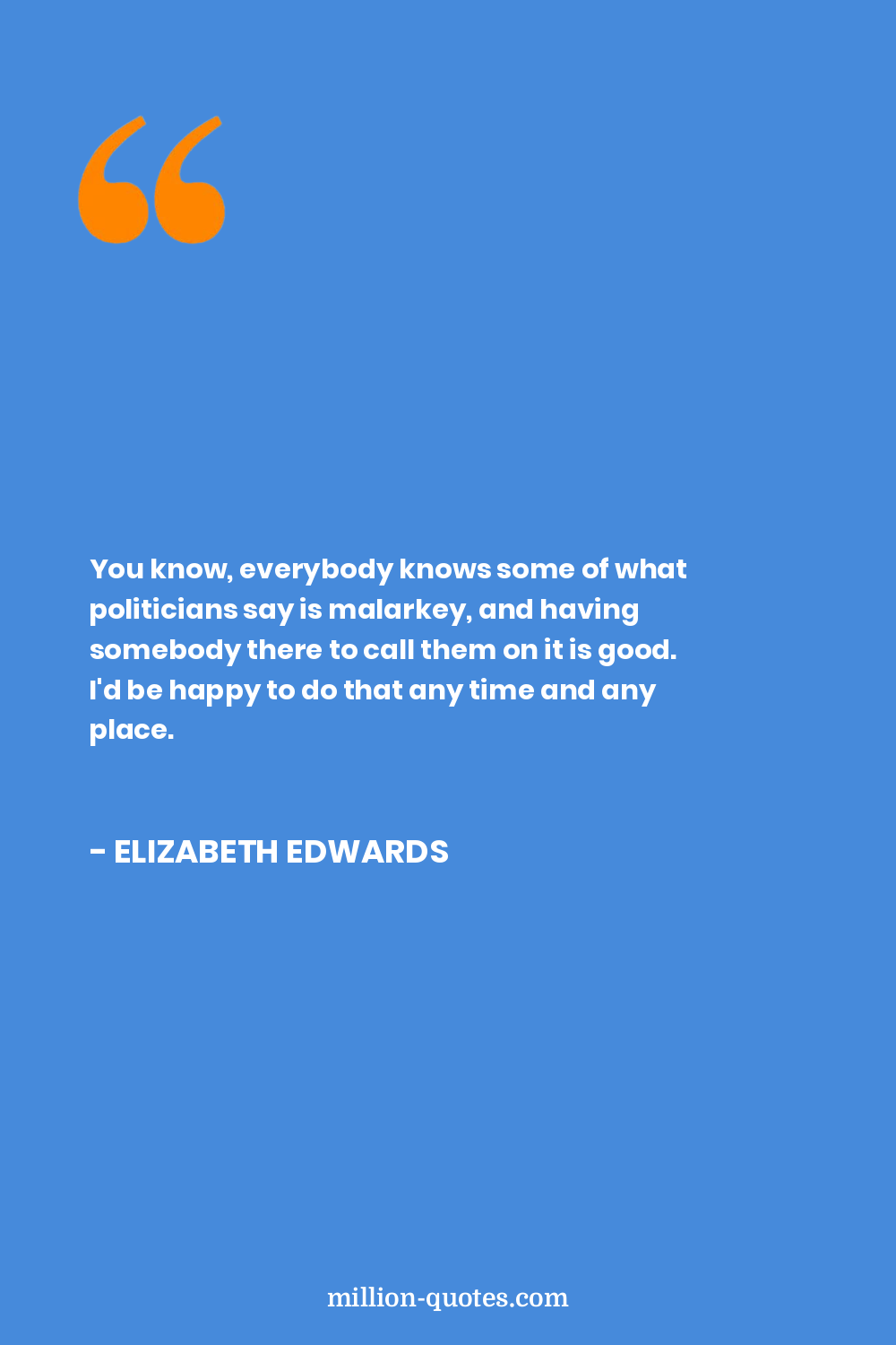 You know, everybody knows some of what politicians say is malarkey, and having somebody there to call them on it is good. I'd be happy to do that any time and any place.