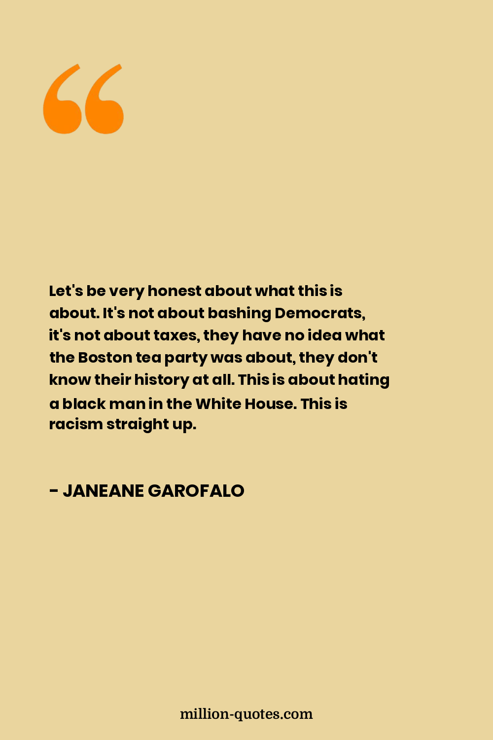 Let's be very honest about what this is about. It's not about bashing Democrats, it's not about taxes, they have no idea what the Boston tea party was about, they don't know their history at all. This is about hating a black man in the White House. This is racism straight up.