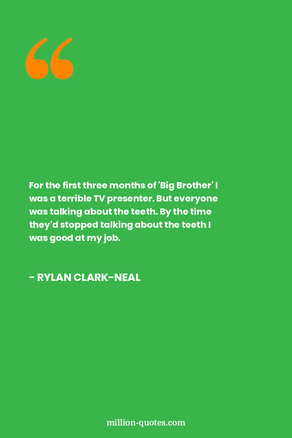 For the first three months of 'Big Brother' I was a terrible TV presenter. But everyone was talking about the teeth. By the time they'd stopped talking about the teeth I was good at my job.