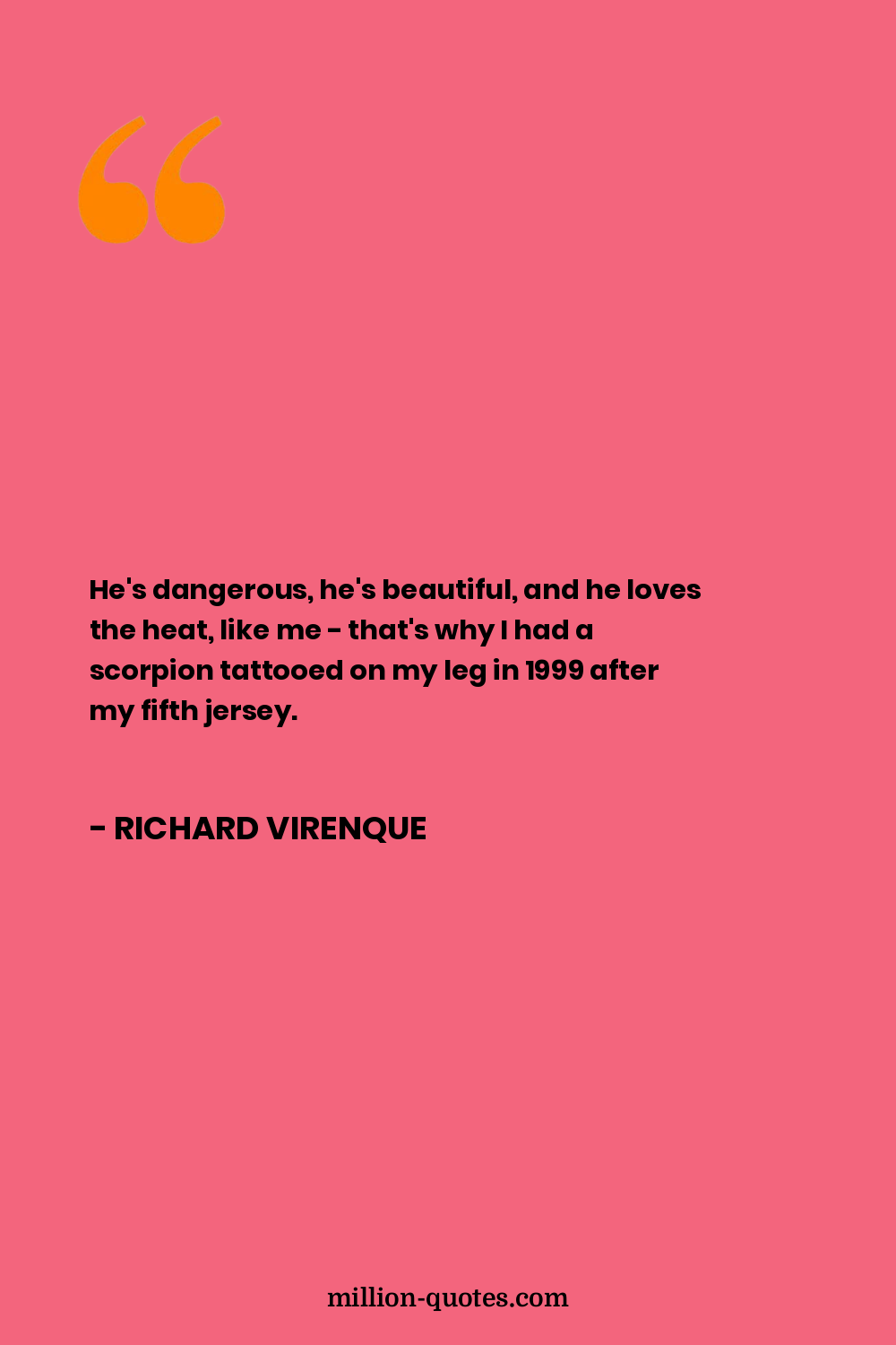 He's dangerous, he's beautiful, and he loves the heat, like me - that's why I had a scorpion tattooed on my leg in 1999 after my fifth jersey.