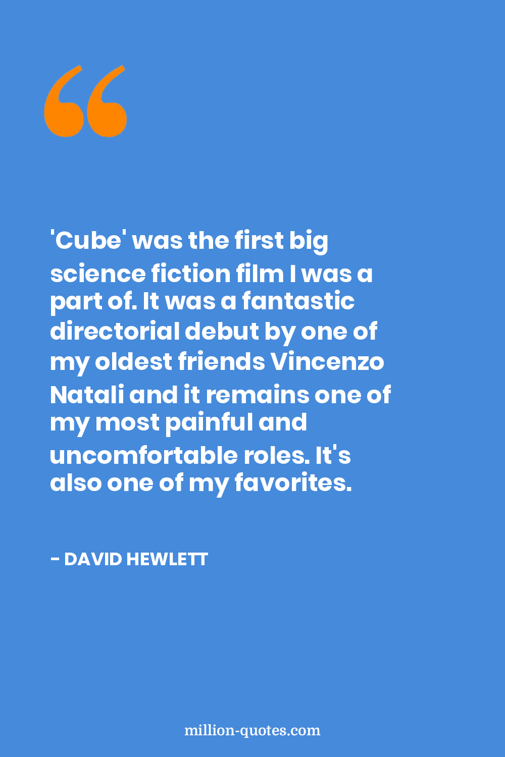'Cube' was the first big science fiction film I was a part of. It was a fantastic directorial debut by one of my oldest friends Vincenzo Natali and it remains one of my most painful and uncomfortable roles. It's also one of my favorites.