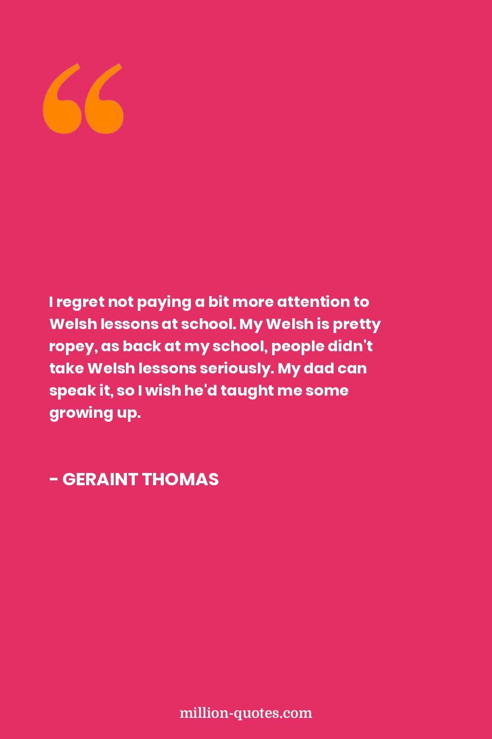 I regret not paying a bit more attention to Welsh lessons at school. My Welsh is pretty ropey, as back at my school, people didn't take Welsh lessons seriously. My dad can speak it, so I wish he'd taught me some growing up.