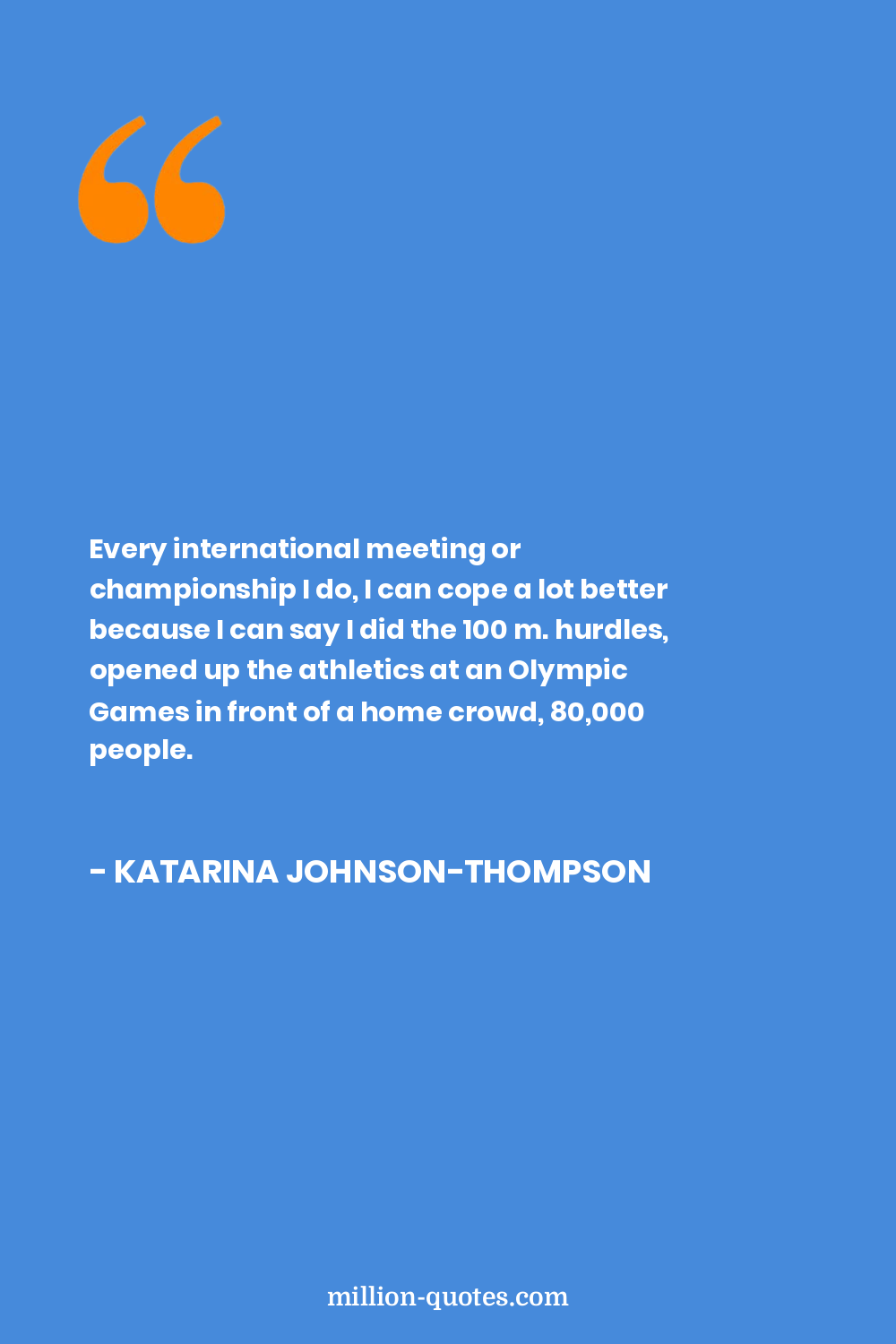 Every international meeting or championship I do, I can cope a lot better because I can say I did the 100 m. hurdles, opened up the athletics at an Olympic Games in front of a home crowd, 80,000 people.