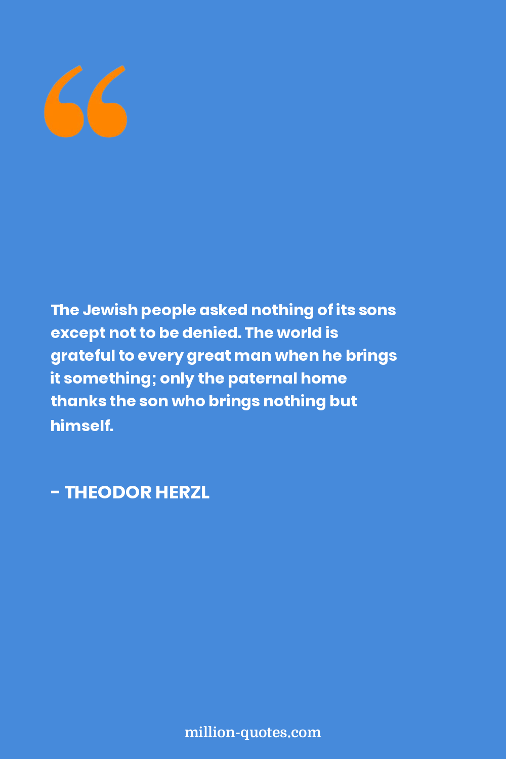 The Jewish people asked nothing of its sons except not to be denied. The world is grateful to every great man when he brings it something; only the paternal home thanks the son who brings nothing but himself.