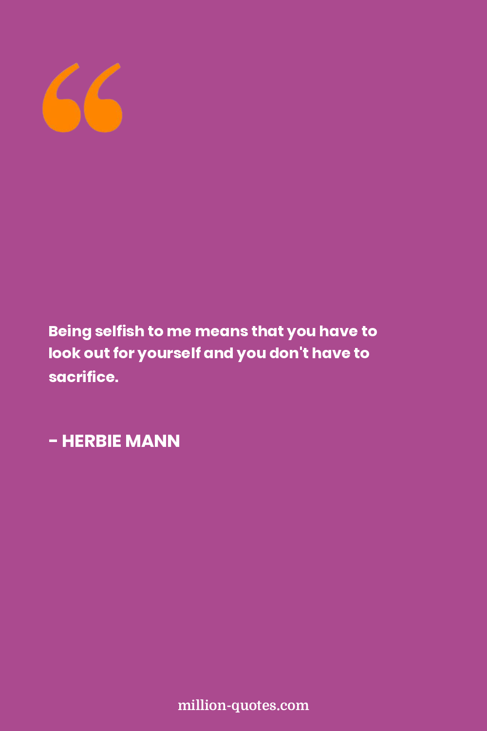 Being selfish to me means that you have to look out for yourself and you don't have to sacrifice.