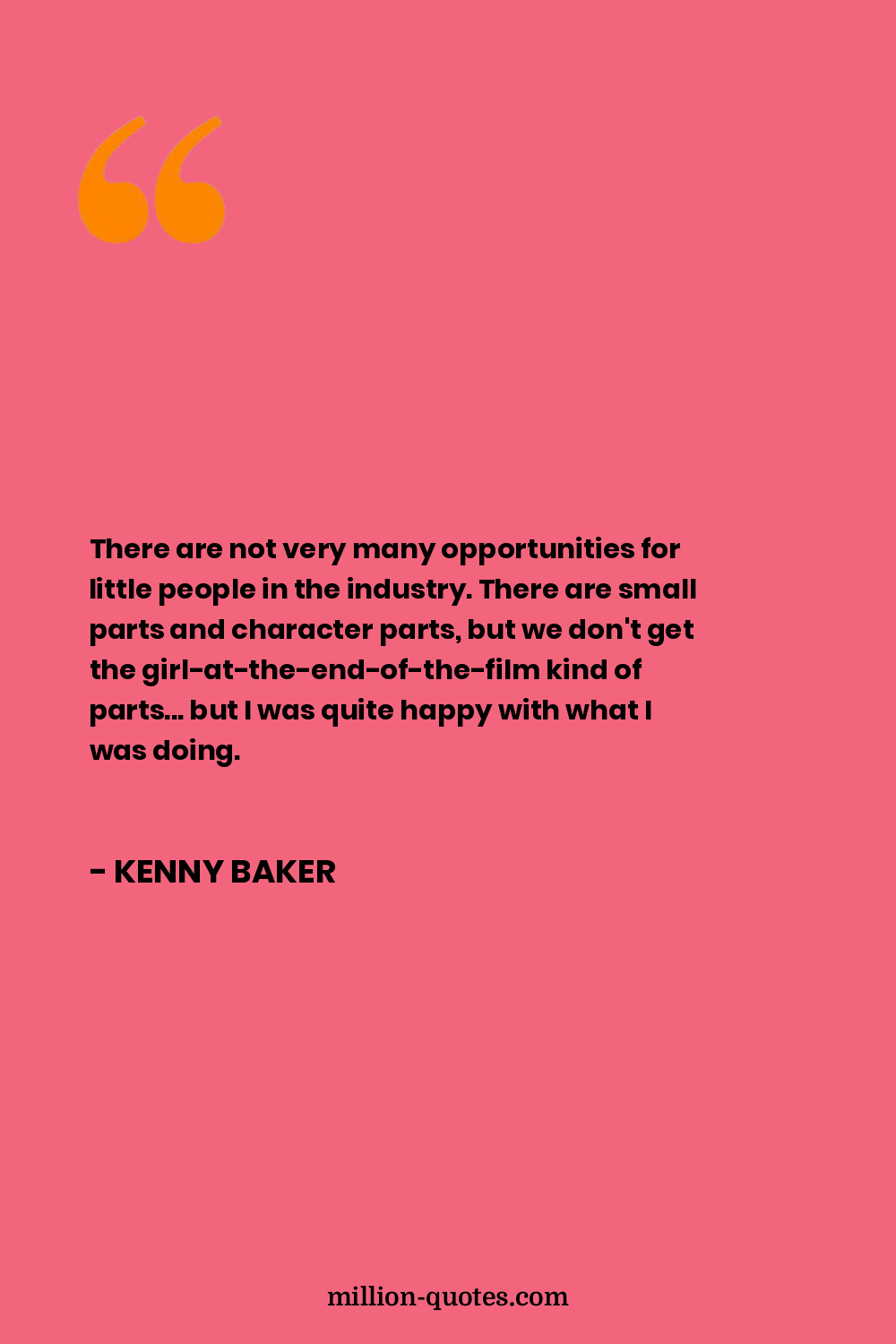 There are not very many opportunities for little people in the industry. There are small parts and character parts, but we don't get the girl-at-the-end-of-the-film kind of parts... but I was quite happy with what I was doing.