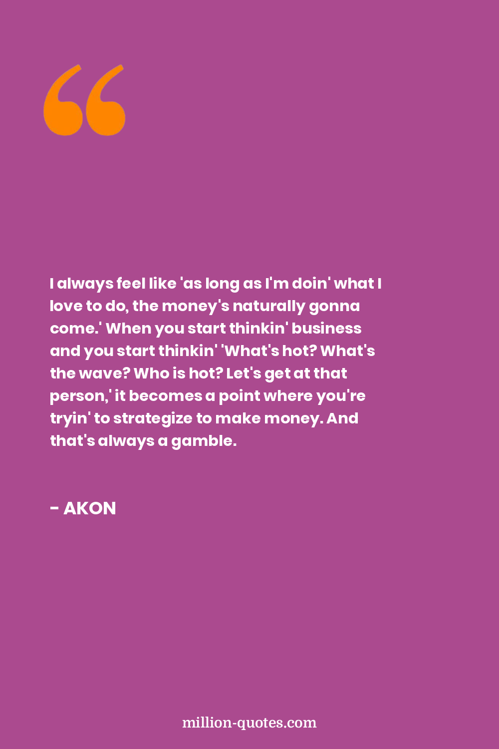 I always feel like 'as long as I'm doin' what I love to do, the money's naturally gonna come.' When you start thinkin' business and you start thinkin' 'What's hot? What's the wave? Who is hot? Let's get at that person,' it becomes a point where you're tryin' to strategize to make money. And that's always a gamble.