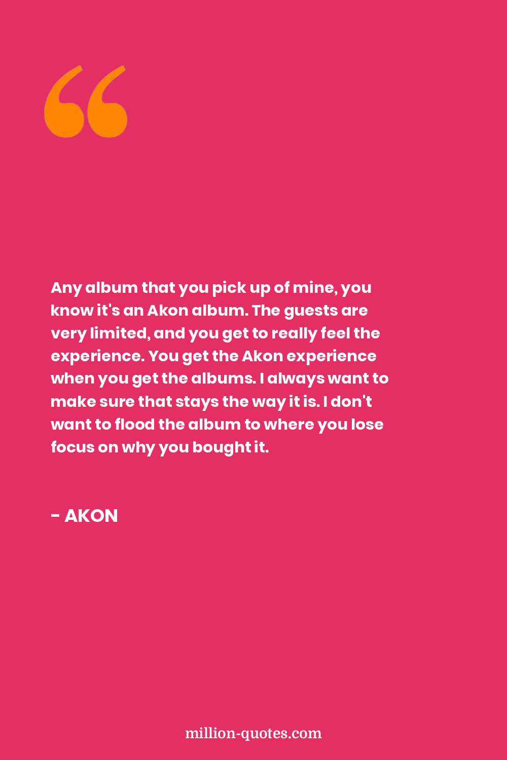 Any album that you pick up of mine, you know it's an Akon album. The guests are very limited, and you get to really feel the experience. You get the Akon experience when you get the albums. I always want to make sure that stays the way it is. I don't want to flood the album to where you lose focus on why you bought it.